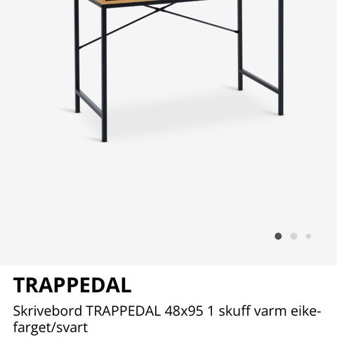 Selger skrivepult i god stand fra jysk til 699kr, i fargen eik og svart. Kjøper må kunne hente og frakte selv.