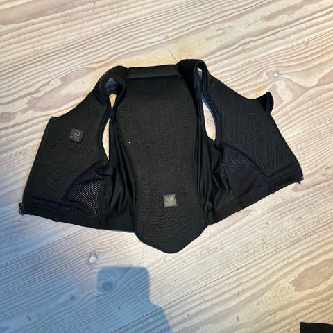 Smart Rider Back Pro2 ryggbeskytter for barn str M. Se bilde av lapp for mer info ang str. Ryggbeskytteren har justerbare stropper og er laget i mykt, polstret materiale med hardere beskyttelsessoner for rygg. Farge svart med røde sømmer. Egnet som ryggbeskyttelse ved ridning eller annen aktivitet der ryggbeskyttelse er påkrevd eller anbefalt.