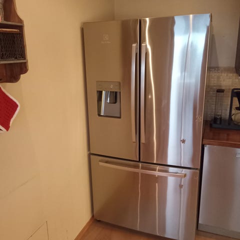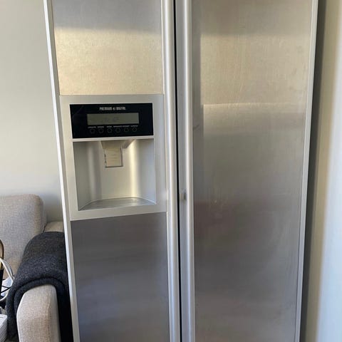 Whirlpool side-by-side kjøleskap i rustfritt stål. Kjøleskapet har to dører med separat kjøle- og frysedel plassert ved siden av hverandre. Innvendig er det flere justerbare hyller, dørhyller og grønnsaksskuff for organisering av matvarer. Frysedelen har hyller og dørrom for oppbevaring av frossenmat. På fronten er det integrert vann- og isdispenser. Egner seg for bruk på kjøkken eller andre steder der det er behov for kombinert kjøl og frys i ett skap.