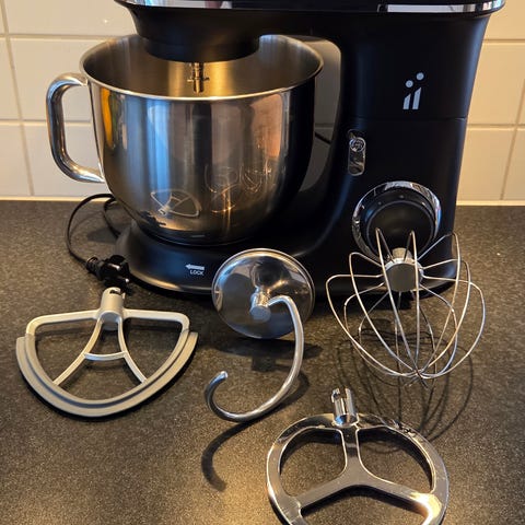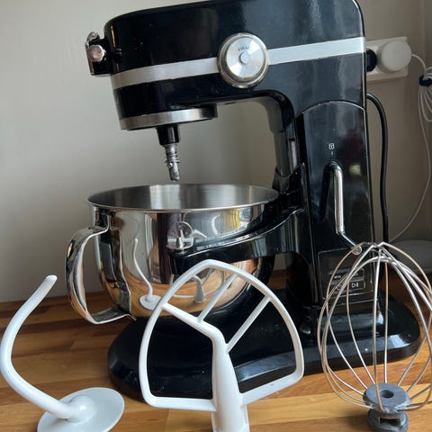 KitchenAid kjøkkenmaskin i matt svart med rustfrie boller og visper