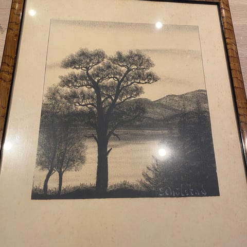vurd. solgt. Rammemål: H: 49 cm. + B: 39 cm. Ant. orig. innramming med refleksfritt glass.