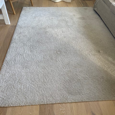 IKEA teppe i rektangulær form med blågrønn og beige mønster. Passer til bruk i stue, spisestue eller andre oppholdsrom. Teppe med klassisk, ornamentert design som kan legges under spisebord eller sittegruppe for å definere soner i rommet og gi et mykere underlag. Materiale og eksakte mål er ikke oppgitt av selger.