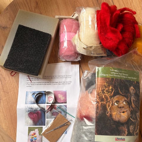 Nålefiltsett masse ull og verktøy