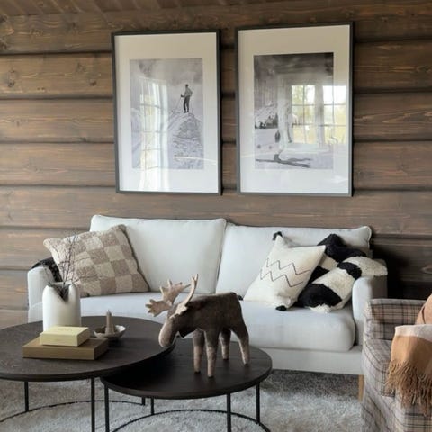U-formet sofa med to sjeselonger, dype seter og mange løse ryggputer som gir en herlig loungefølelse. Perfekt som TV-sofa og for sosiale soner.