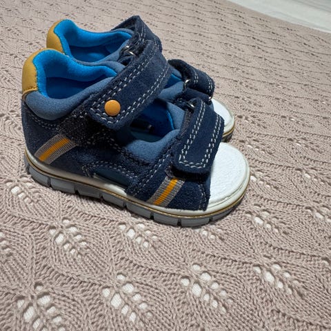 Prisen er for to deler, inkludert de blå joggeskoene, som er nye og koster 200 kroner, størrelse 18 sandalene 50 kroner størrelse 20