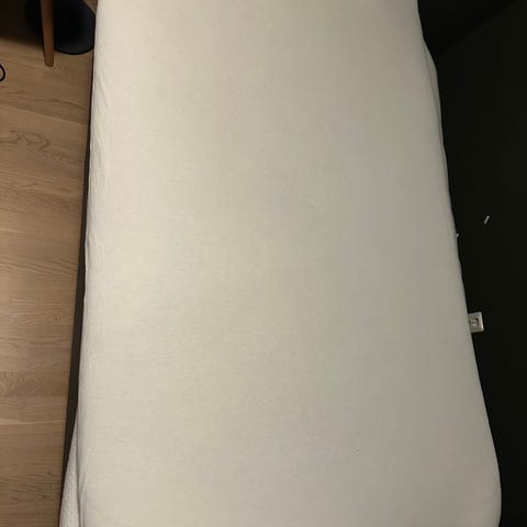 IKEA Skårer rammemadrass i beige tekstiltrekk. Madrassen har integrert ramme med treben, og overflaten har en quiltet struktur. Egnet som enkeltseng eller gjesteseng. Flekker og bruksspor er synlige på overflaten, og det kan være behov for rengjøring eller overmadrass for mer jevn liggekomfort. Passer i soverom, gjesterom eller som ekstra seng i bolig eller hytte.