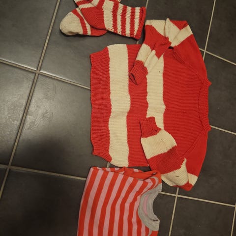 Helt nye strikkede sett i rosa/hvit og mint grønn/ hvit. Usikker på str