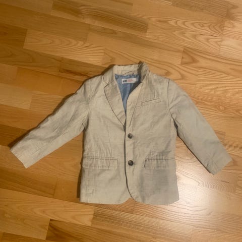 H&M blazer for barn i størrelse 110. Blazeren er grønn og har klassisk snitt med krage og knepping foran. Den har lommer foran og er helfôret på innsiden. Passer til pentøy, selskap eller andre anledninger der barnet trenger en litt mer formell overdel.
