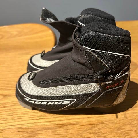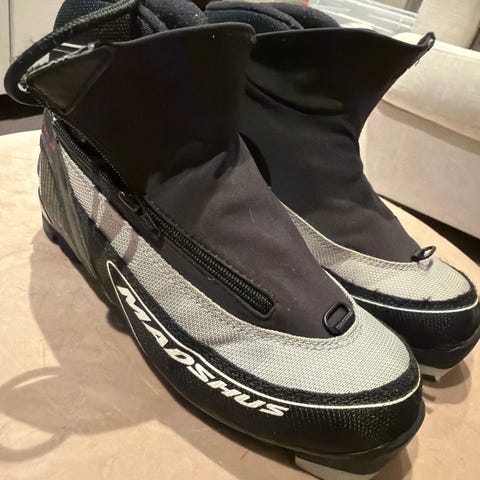 Madshus TecnoPro langrennsstøvler i svart og grått. Støvlene har snøring foran med beskyttende glidelåslukket overtrekk.