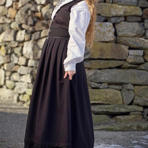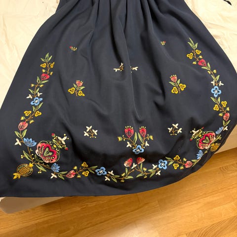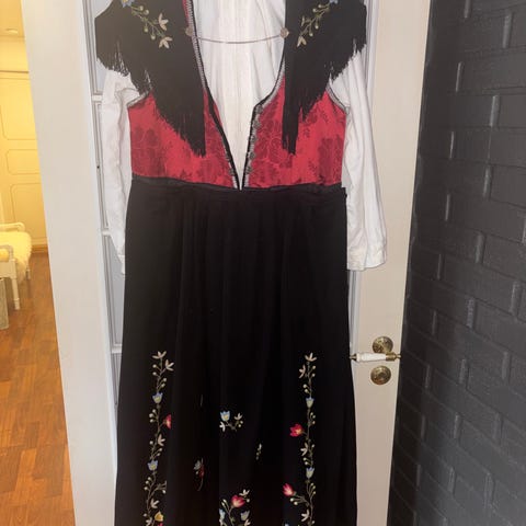 Meget pen festdrakt m/skjorte og festnål,bare brukt noen få ganger. Str.34/36