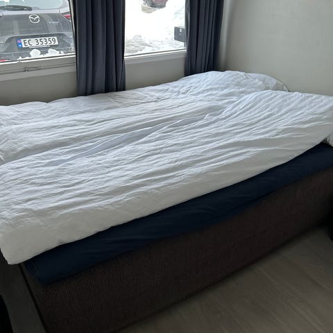 Selges grunnet flytting. Pent brukt, men normale bruksmerker må påregnes. Byttet ut snegebein i fjor, dette gjør sengen ca 55cm høy uten overmadrass. Kjøpt lengste jysk hadde i sort metall. Overmadrass er ikke tiltenkt med, da det nok er lurt å kjøpe ny - men kan medfølge dersom du ønsker. Må hentes og bæres ut av kjøper.