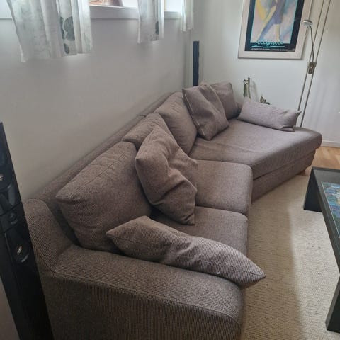 Sofaen kan enkelt slås ut til seng og har romslig oppbevaringsplass under setet – perfekt til dyner, puter eller sengetøy. Stabil konstruksjon og komfortabel både å sitte og ligge på.