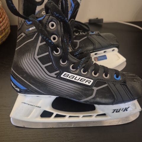 Bauer ishockeyskøyter i svart og hvit farge. Skøytene har klassisk snøring og TUUK-skøytestål. Egnet til ishockey og generell skøytebruk på is. Overdel i syntetisk materiale med polstret innside for støtte rundt ankel og fot. Kun brukt et par ganger.