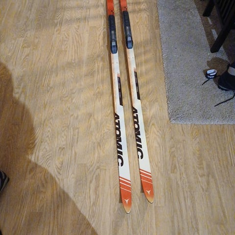 Atomic langrennski med bindinger i blå og hvit farge. Skiene har klassisk spenn og passer til langrenn på preparerte løyper. Undersiden viser tradisjonell såle uten stålkant. Leveres med monterte bindinger som er tilpasset klassiske langrennsstøvler med tilsvarende bindingssystem. Egnet for bruk i marka og på skistadion.