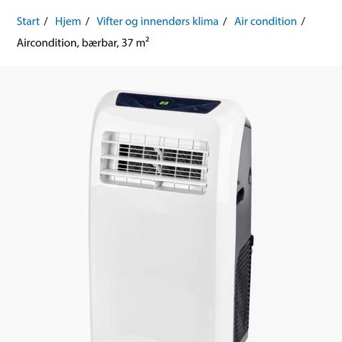 Enheten er frittstående og kan flyttes mellom rom etter behov. Passer til bruk innendørs for kjøling av mindre til mellomstore rom, avhengig av modellens kapasitet. Klimaanlegget har luftutløp på toppen og ventilasjonsgitter på siden for luftinntak og -utslipp.