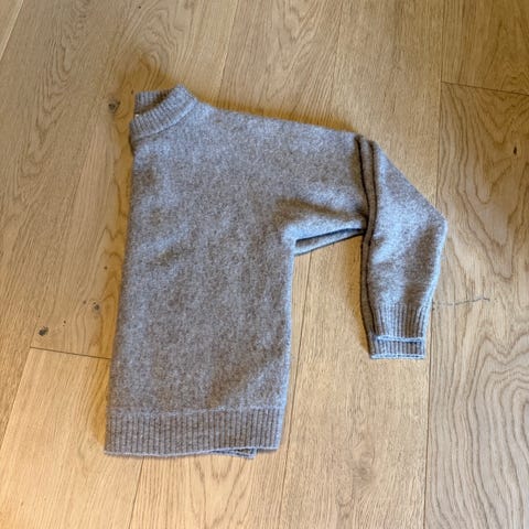 Tiger of Sweden genser for dame i størrelse S. Genseren er i beige ull med rund hals og ribbestrikkede kanter på hals, ermer og nederkant. Passer til hverdagsbruk og kan kombineres med både bukser og skjørt for et enkelt og nøytralt uttrykk.
