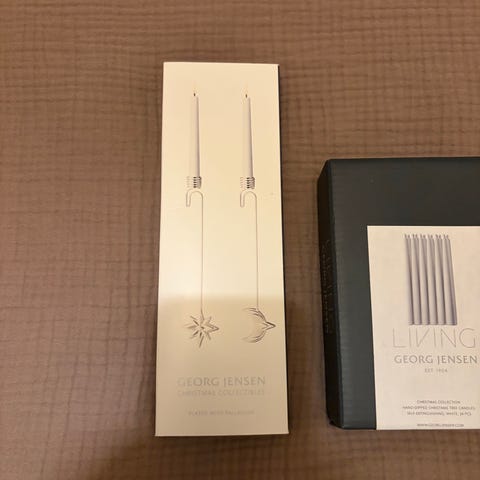 Georg Jensen Christmas Classics juletrelys i hvit farge. Hånddyppede lys beregnet for bruk på juletre eller i mindre lysestaker. Lysene er selvslukkende og er utformet for å slukke av seg selv før hele lyset er nedbrent. Passer til bruk sammen med Georg Jensen juletrepynt og lysholdere, eller andre passende holdere for tynne juletrelys.
