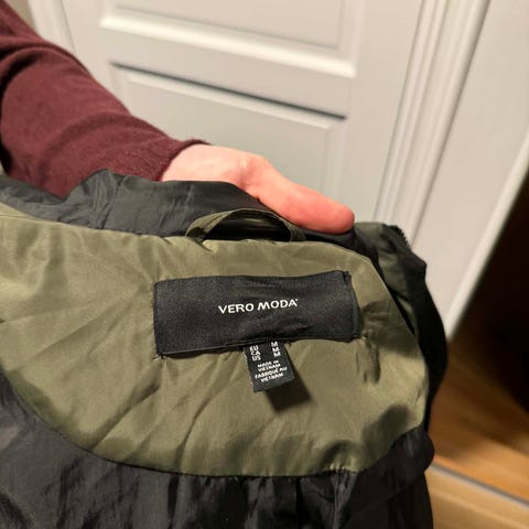 Kjempefin svart dunjakke fra Vero Moda str M, lommer og glidelås i sidene, innerlomme, mansjetter rundt håndledd.