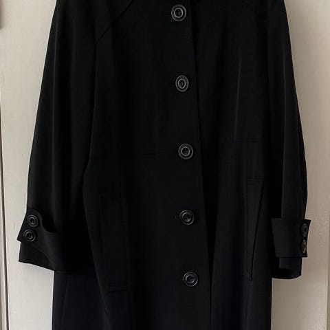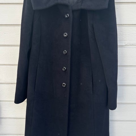 Tyrihans ullkåpe i 100% merinoull, størrelse XL. Modellen har knapper i front med skjev lukking.