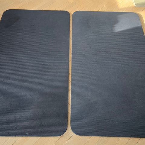 Matten består av to polstrede deler som kan brettes sammen for enklere oppbevaring. Overflaten er glatt og lett å tørke av. Egnet mest til sit ups i crossfit