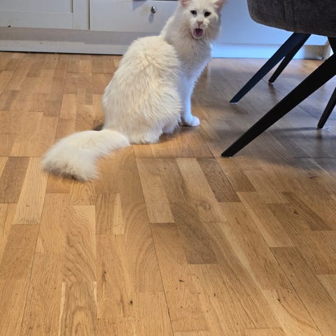 Kasper har mye på hjertet, og han kommer løpende og møter deg med et variert spekter av mjau når han ikke har sett deg på en stund. Han maser derimot aldri på natta, og er generelt en tålmodig og snill katt ❤️