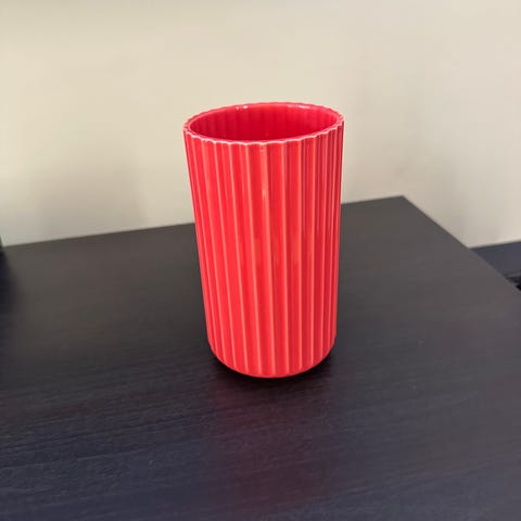 Tube-vasen er laget av håndblåst, gjennomfarget glass med en elegant, slipt kant. Vasens unike formspråk gjør den til en skulptur i seg selv, og med sitt enkle og moderne uttrykk passer den perfekt til både friske og tørkede blomster.