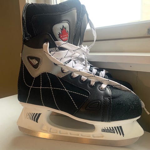 Pro Flyer T3 ishockeyskøyter i størrelse EU 41 1/3. Skøytene har svart yttermateriale med hvit innerside og røde detaljer. Bladene er montert i hvit holder. Modellen er egnet til ishockey og annen bruk på is, for eksempel trening og fritidsløp. Skøytene har snøring foran for justering av passform.