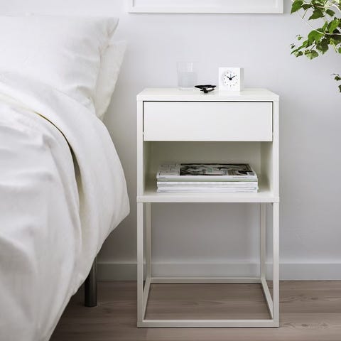 Skapkombinasjon/nattbord med ben, hvit/tre, som er veldig pent brukt. Ingen bruksmerker.