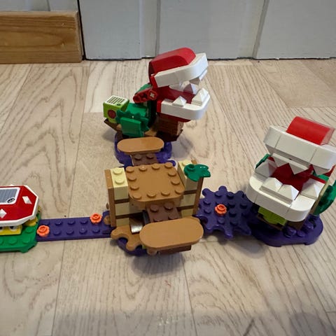 LEGO Super Mario Piranha Plant byggesett. Sett med klosser for å bygge den kjente Piranha Plant-figuren fra Super Mario-universet, med grønt rør og bevegelig plantehode. Egnet som byggeprosjekt og utstillingsmodell for LEGO- og Super Mario-interesserte.