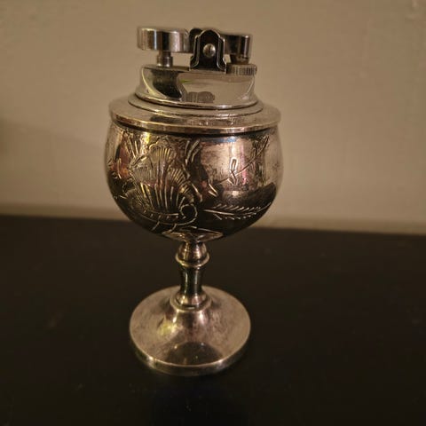 Spesiell sak. Laget til Tröndelagsutstillingen 1930 som sammenfalt med 900-årsjubileet for slaget på Stiklestad. Sannsynig produsent Magnus Aase. Bergen (se stempel "M"). Høyde 11 cm.