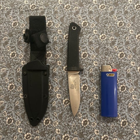 • 🏷️ Bladmerking “COLD STEEL – SAN MAI III” (Made in Japan på disse)