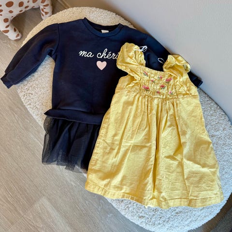 Diverse jente klær i størrelse 92. Kjolen har flerfarget mønster og lange ermer, egnet til hverdagsbruk eller enkel pynting. Materiale fremstår som mykt og behagelig for barn. Passer til barn rundt størrelse 92. Se størrelser på bilder. Vil helst selger samlet. Pakke pris: 600.