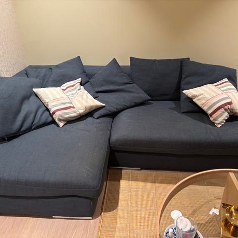 Gir bort en IKEA VIMLE hjørnesofa (med sjeselong/chaise). Sofaen er fortsatt fullt brukbar og god å sitte i, men trekket har en del skader/slitasje, spesielt på hjørner og kanter (se bilder). Passer fint til deg som vil ha en rimelig sofa, har planer om å bytte trekk, eller trenger en midlertidig løsning.