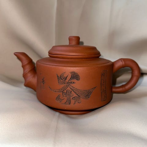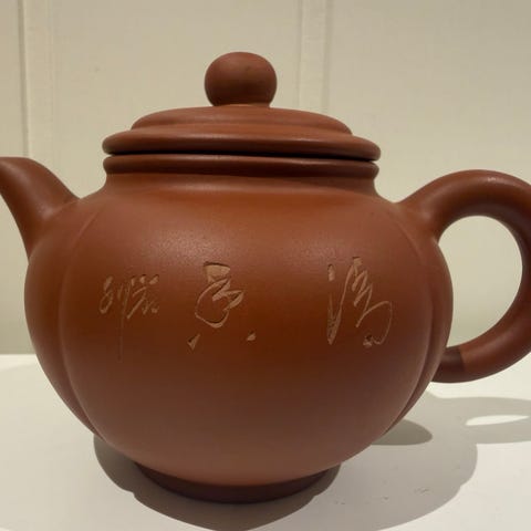 Yixing-tekanne, formodentlig en tidlig produksjon fra Dong Kaisheng (董開生) som var tilknyttet Yixing Zisha Factory 2, sent 80-/tidlig 90-tall.