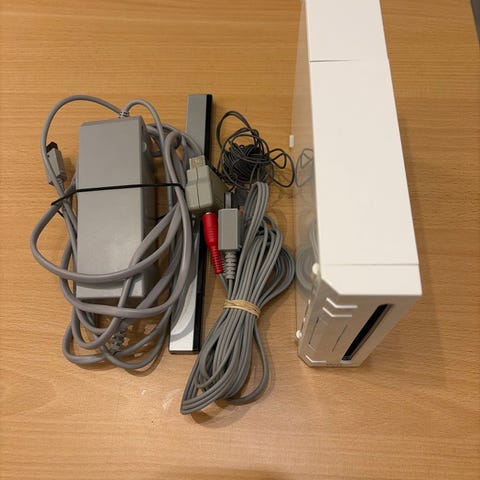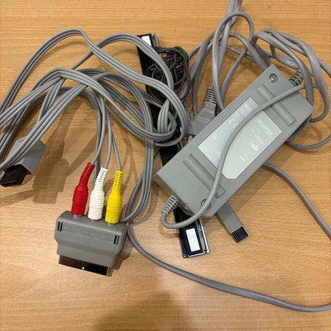 Nintendo Wii strømadapter, sensorbar og AV-kabel grå