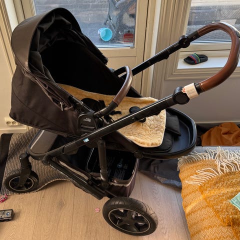 Britax sportsvogn i svart farge. Vognen har fire hjul, hvor de to fremre er svingbare for enklere manøvrering. Setet har justerbar rygg og stor kalesje som gir god skjerming. Det følger med frontbøyle og oppbevaringskurv under setet. Vognen egner seg til hverdagsbruk og trilleturer i by- og nærmiljø. Følger også med regntrekk