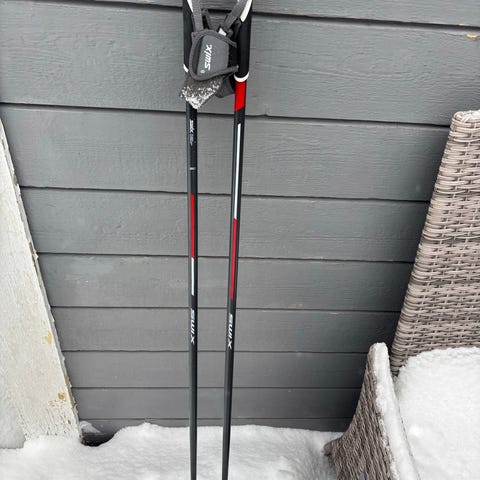 To par Swix staver. Det ene er sort og 120cm lang. Den andre er grå, 140cm lang og synlig brukt. Begge er inkludert.