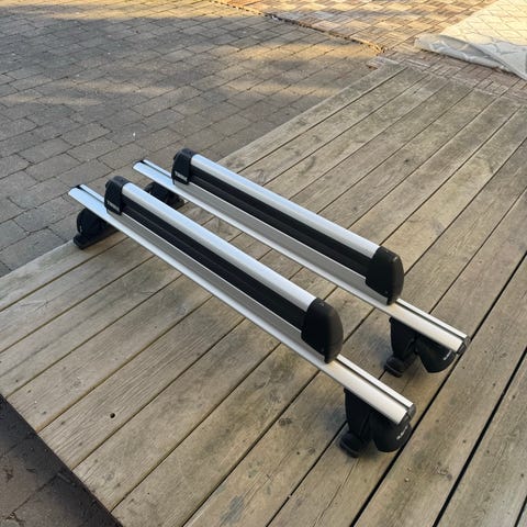 Thule skistativ selges, har stått på en Skoda Kodiaq 18’ mod med takrails