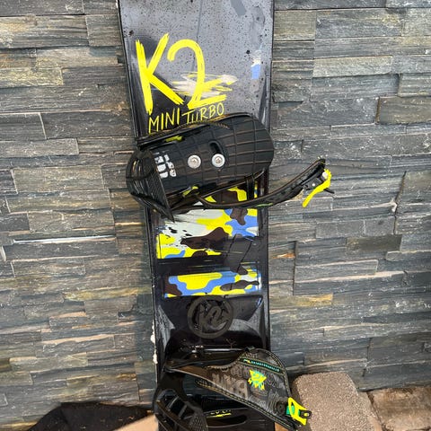 Cycab Evolution snowboard i svart med monterte bindinger. Brettet har grafikk med gul «Evolution»-logo på oversiden. Undersiden er ensfarget svart. Egner seg til vanlig snowboardkjøring.