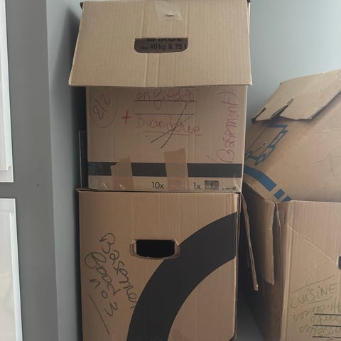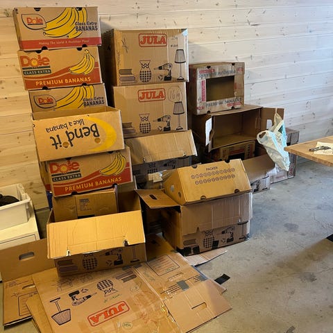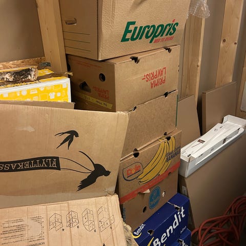 Flytteeske med papir gis bort