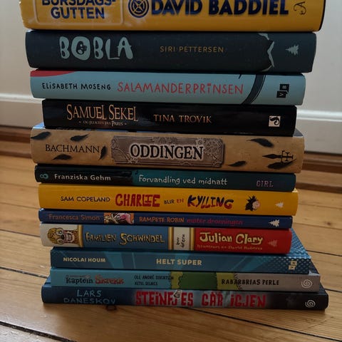 Pakke med diverse barnebøker og ungdomsbøker i ulike serier og formater. Bøkene har harde permer og kommer i forskjellige farger og størrelser. Egner seg som lesestoff for barn i skolealder og oppover. Selges samlet som en blandet bokpakke
