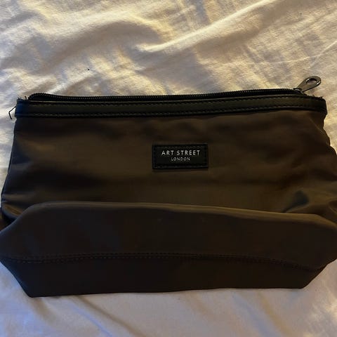 DAY ET toalettmappe. Vesken er svart og har glidelåslukking øverst. Egnet til oppbevaring av toalettartikler, sminke eller småting på reise og i hverdagen. Innsiden har ett hovedrom uten ekstra lommer. Yttermaterialet er mykt stoff med DAY ET-logo på fronten.