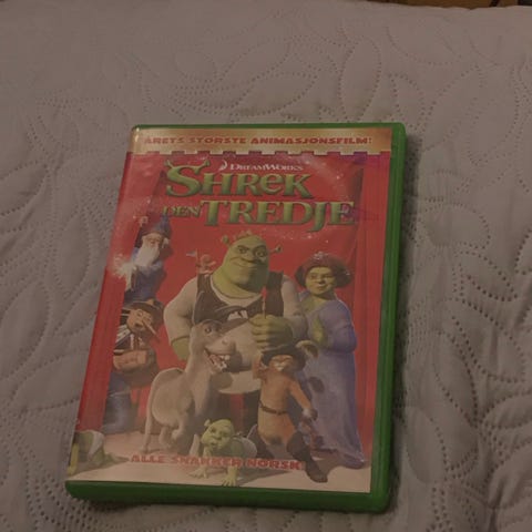 Shrek den tredje julefilmen DVD animasjonsfilm. DVD med juletema fra Shrek-universet, med Shrek og de kjente figurene i en animert spesial. Egnet for avspilling på standard DVD-spillere. Filmen er en familiefilm med juleinnhold og passer for barn og voksne som liker animasjon og Shrek-serien.