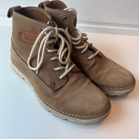 Caterpillar sko i grønn med brunt skinn. Veldig kule sko som fortjener bruk, her har de stått for det meste i skapet.
