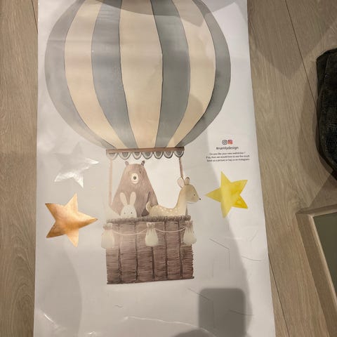 Veggbilder barnerom luftballong og luftskip dyr motiv