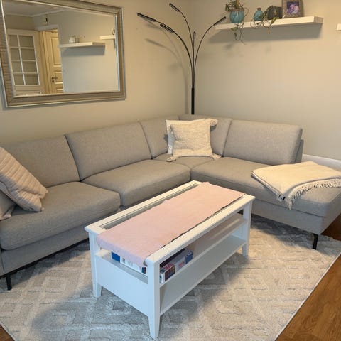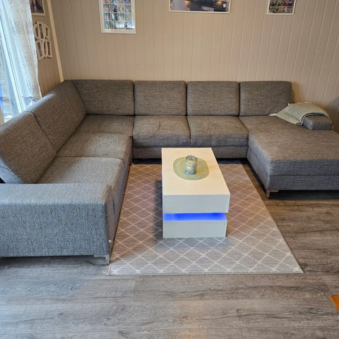 Mål: 220x285, setehøyde ca 42 cm, og ca 64 cm dypt, myke seter.