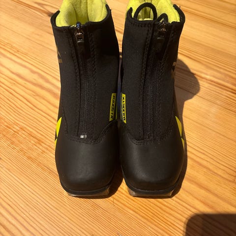Fischer XJ sprint langrennsstøvler for barn i svart og gul farge. Skoene er i god stand og har fortsatt mange turer igjen i seg.