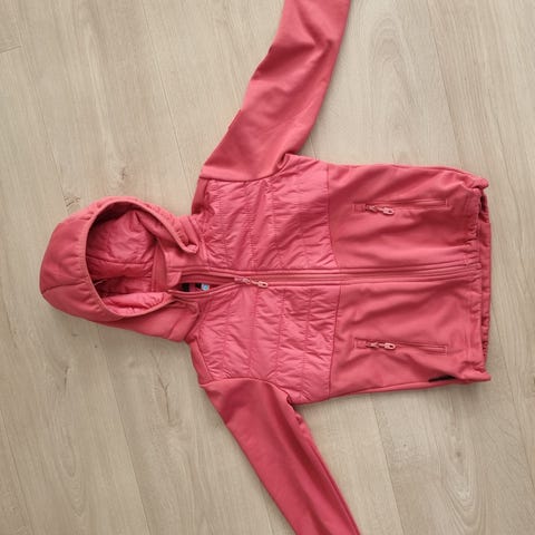 Skogstad jakke for jente i størrelse 128. Jakken er rosa med mørke kontrastfelt og har avtakbar hette som festes med trykknapper. Passer til hverdagsbruk og utendørsaktiviteter for barn i aktuell størrelsesgruppe.