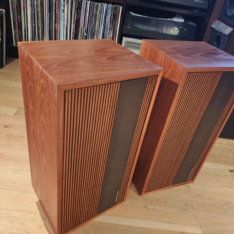 Pent brukte høyttalere fra Tandberg. Sjelden utgave i eikefiner.