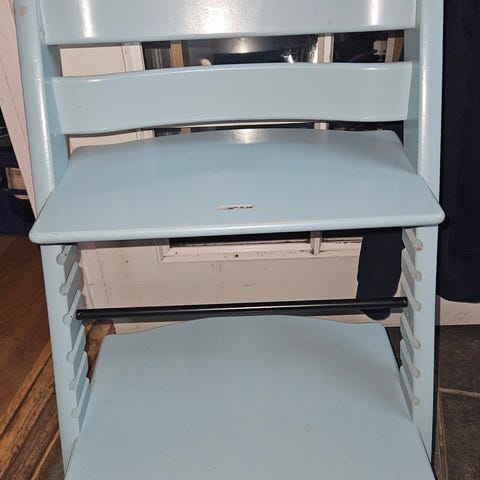 Tres ned på rygglene. Kompatibel med eldre Stokke stoler. Sikkert også nye?